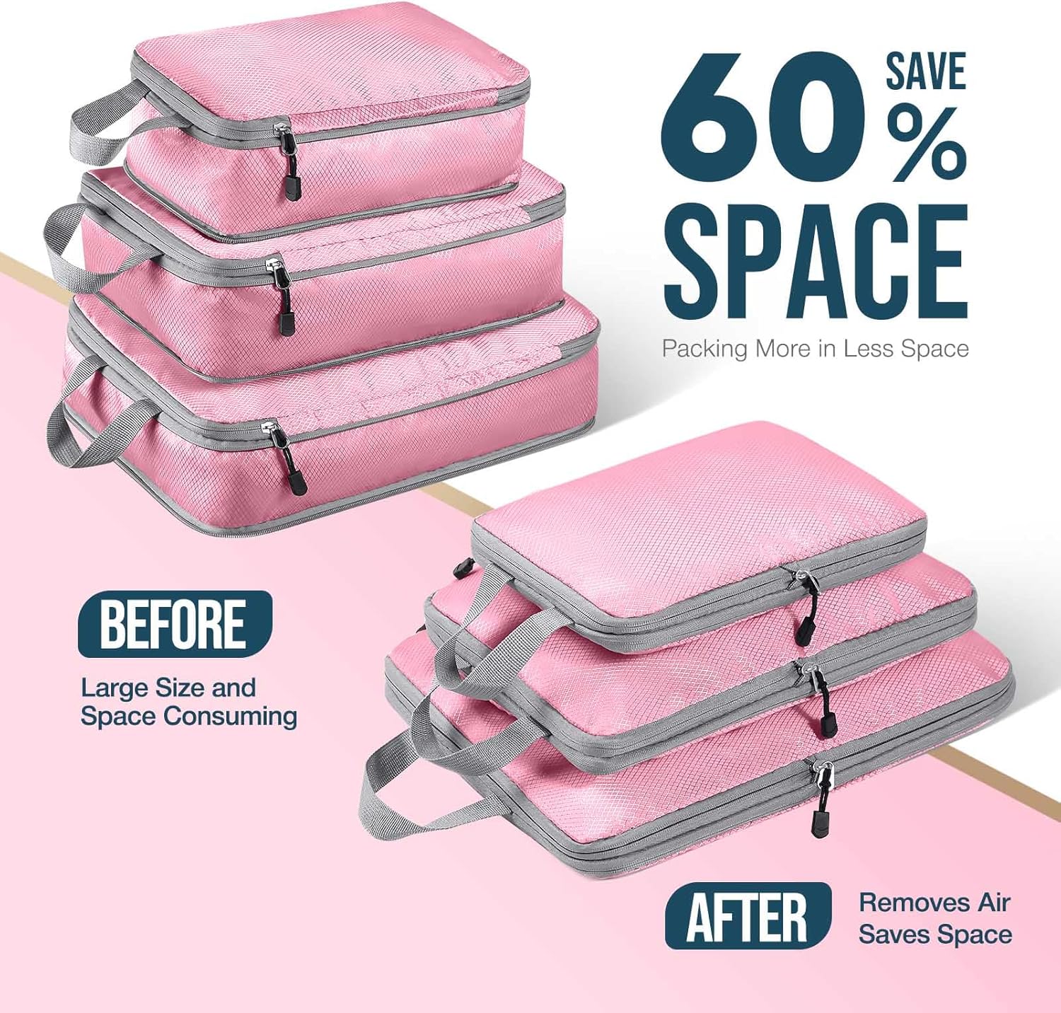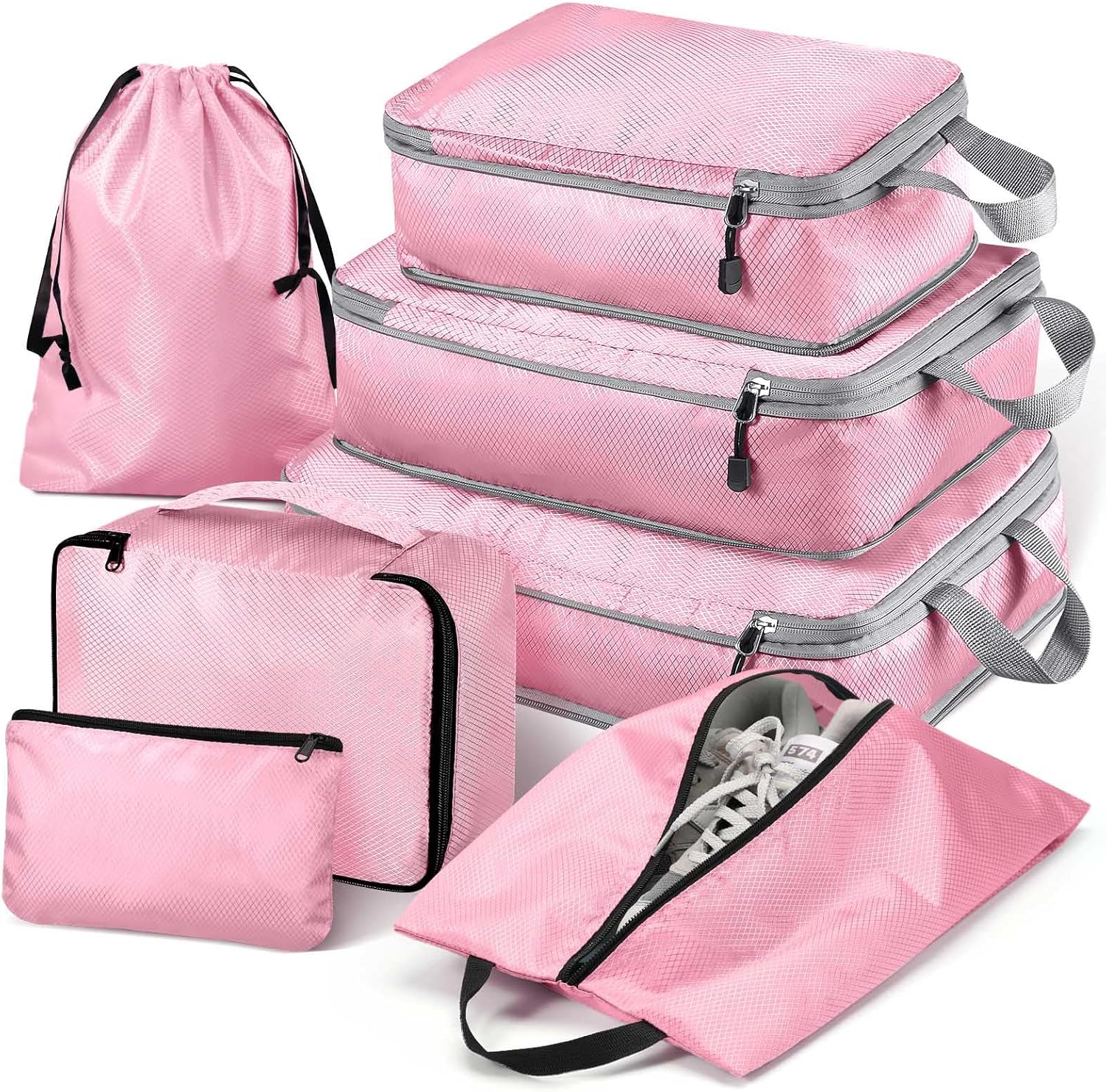 Hommtina Compression Packing Cubes for Suitcases, 7 Set Travel Organizer Cubes for Women (Light powder)