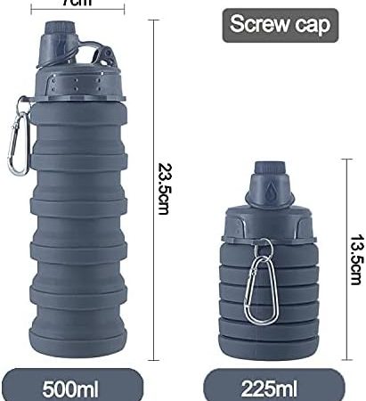 Collapsible Water Bottles 500 ml 2 pack with silicone collapsible cup 200 ml 2 pack,Travel Water Bottle Portable Hiking Water Bottle Reusable BPA Free Silicone Water Bottles.(Colorful)