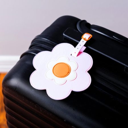 Eccolo Jumbo Flower Luggage Tag – Cute Floral Bag Identifier with Durable Strap and Secure Info Card Pocket – Pink, White & Gold