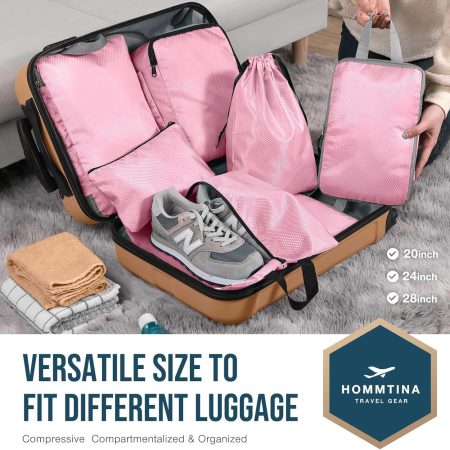 Hommtina Compression Packing Cubes for Suitcases, 7 Set Travel Organizer Cubes for Women (Light powder)
