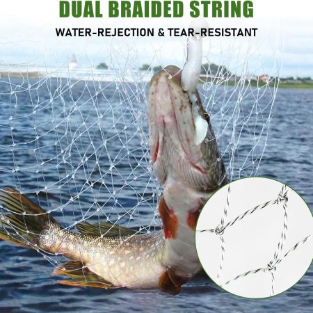 Portable Bridge and Pier Fishing Net, 32" Heavy-Duty Fishing Cast Nylon Mesh Drop Net with Rope for Pier Fishing